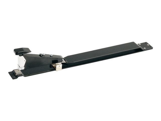 Akthäftaren för stora format. Bottenplatta med gummifötter. Hål för fastskruvning. Häftdjup 400mm med ställbart papperstopp för precisionshäftning. Tar 210 klammer 24/6, 26/6-8, 24/8+ super strong rekommenderas vid tjockare bunt. Kapacitet 40 ark. Garanti 5 år. – Längd: 49,5cm