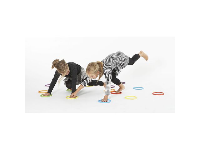 Färgglada aktivitetsringar som tilltalar barn i alla åldrar och vuxna. Aktivitetsringarna är tillverkade i mjukt konstgummi och kan användas till en mängd olika aktiviteter så som dans, gå på tå i ringarna, balansera ringarna på huvudet, jonglera, kasta ringarna till varandra eller bygga figurer # möjligheterna är närmast oändlig. Aktivitetsringarna kan användas både i spontana lekar och i strukturerade aktiviteter som rytmik och gymnastik. Aktivitetsringarna passar för både individuella aktiviteter och aktiviteter i grupp. – Användbara till en mängd olika aktiviteter – Aktivitetsringarna passar utmärkt både i strukturerade aktiviter och i spontan lek – Kan användas både för individuella aktiviter och i aktiviteter grupp – Färgglada – Tillverkad av TPE plast fri från ftalater – CE-märkt – Varning. Lämpar sig inte för barn under 3 år