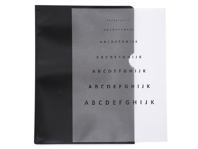 Sekretessmapp med framsida som gör det svårt att läsa igenom. Tillverkad av PP. Svart baksida 0,35my, Framsida 0,17my – Skyddar dina dokument från insyn – PP-plast