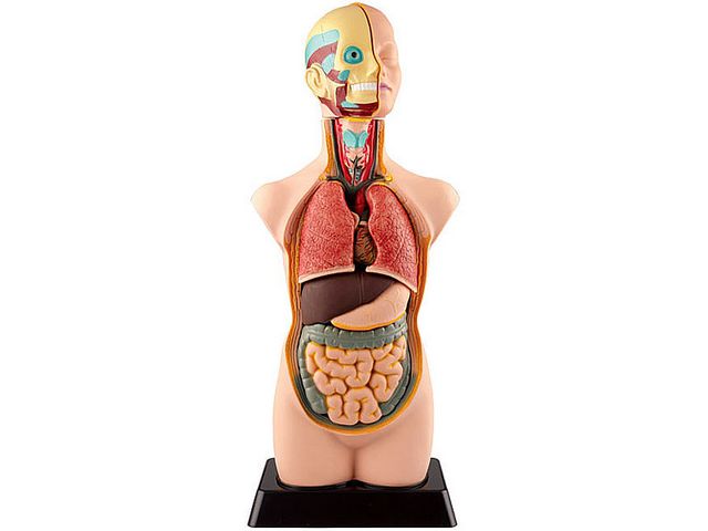 Detta stora anatomiset består av huvud och torso och som med fördel kan användas i utbildningssyfte I setet finns 11 delar som kan plockas ut och studeras närmare för ökad förståelse. Anatomisetet är målat i naturtrogna färger. Den medföljande manualen är illustrerad i färg ger information och utbildningsmaterial. – Material: ABS-plast – Antal delar: 11 stycken – Höjd: 50 cm