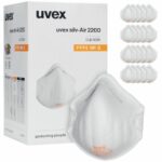 Andningsskydd UVEX 2200 är en FFP2-klassad mask utan ventil. UVEX 2200 är en certifierad FFP2-mask enligt EN 149:2001+A1:2009. UVEX C2200 är D-märkt vilket betyder att uppfyller kraven för dammtest med dolomit: utmärkt andningsförmåga även vid stora mängder damm. Andningsskydd är avsedda för engångsbruk och skyddar användaren mot skadliga ämnen och partiklar i inandningsluften. Det skyddar även omgivningen mot användarens utandningsluft. Andningsskydden finns i 3 klasser enligt europeisk standard, FFP1, FFP2 och FFP3. – CE-certifierad – Godkänd enligt: EN 149:2001+A1:2009 – FFP2-klassning – Utan ventil – Färg: Vit