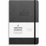 Anteckningsbok framtagen för möten. Skriv ner agendan och vad som behöver förberedas. 3st anteckningssidor finns för varje möte. Plats för 44 möten. – Format: A5. – Omslag: Konstläder. Inbunden. – Detaljer: Gummiband. Märkband. – Antal sidor: 192. – Pappersvikt: 100 g. – Miljöinformation: FSC® papper.
