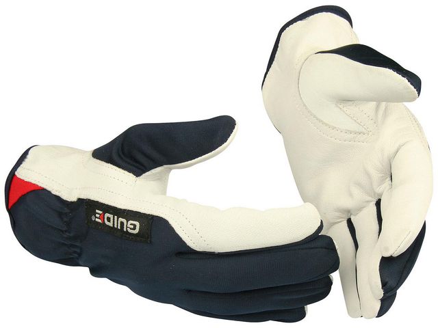 Lätt och slitstark arbetshandske med innerhand i mjukt och smidig getnarv som ger bra rörlighet och komfort genom hela arbetsdagen. Arbetshandske GUIDE 30 har en ovanhand som är tillverkad i syntet med en borstad insida som gör att materialet känns behagligt mot handen. Keystone-tummen ger handsken en ergonomisk passform. Förstärkning på pekfinger. Lämplig för montage- och lättare allroundarbeten inom bygg, industri och hantverk. – CE-certifierad – Godkänd enligt: EN388, 2003 (2, 1, 2, 1) – Material: Läder, Konstläder – Klassificering: Kategori II – Färg: Vit, blå – Storlek: 10