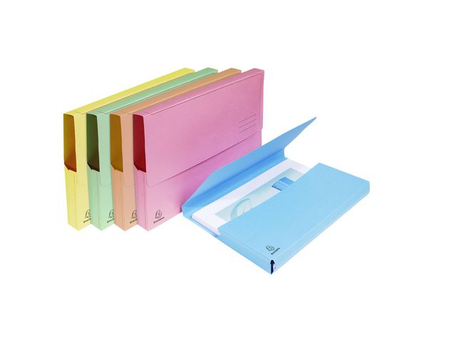 Håll dina papper organiserade i de snygga och färgstarka Exacompta Nature Future®-dokumentfickorna. Exacompta Forever®-dokumentmapparna, som finns i en rad roliga färger, är perfekta när du vill samla lösa papper på kontoret eller när du vill ha alla dina dokument på ett ställe inför ett möte. Tack vare den tjockare ryggen kan de placeras vertikalt på en hylla. Med hörnstöd som expanderar till 30 mm har dessa dokumentfickor gott om förvaringsutrymme och rymmer 300 pappersark på upp till 240 x 320 mm, inklusive A4. Du kan använda de tryckta linjerna på framsidan för att skriva en titel eller anteckningar. De här mapparna, som är tillverkade av 220 g/m² presspan från hållbara källor, håller hög kvalitet, är hållbara och har minimal miljöpåverkan. – Förvaringskapacitet: 300 ark av A4-papper eller papper på 240 x 320 mm – Material: 220 g/m² presspan – Mått: 245 x 325 mm – Rygg: 30 mm – Olika färger: Blå, krämfärgad, gul, rosa, grön – Certifiering: ISO 9706 – PEFC