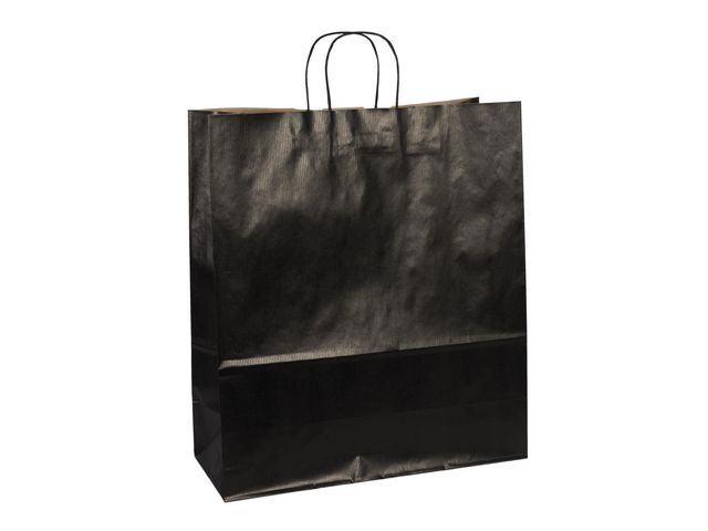 Bärkasse som finns i flera olika färger och storlekar. Fungerar även som presentpåse. Högkvalitativ papperskasse med handtag av tvinnat papper och förstärkt botten. – Mått: 400 x 160 x 450 mm – Färg: svart