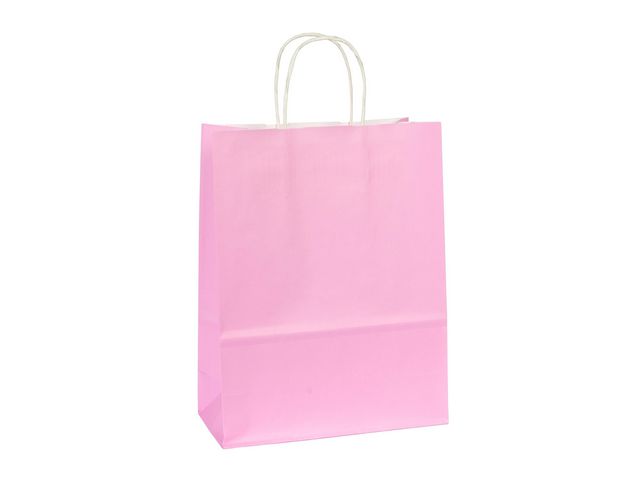 Bärkasse som finns i flera olika färger och storlekar. Fungerar även som presentpåse. Högkvalitativ papperskasse med handtag av tvinnat papper och förstärkt botten. – Mått: 240 x 110 x 330 mm – Färg: ljusrosa