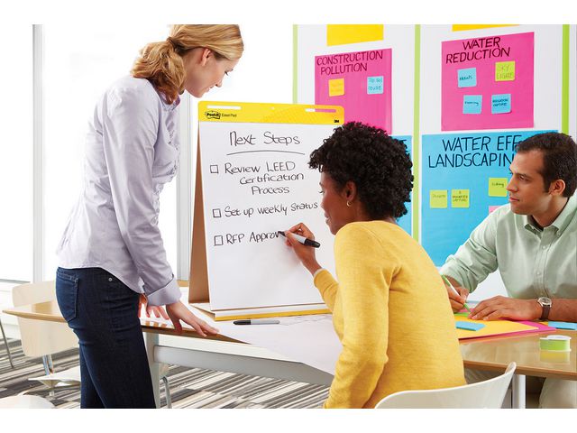 Post-it® bordsstaffliblock är ett flexibelt och bärbart alternativ för anteckningar under möten eller för att lyfta ett utbildnings- eller presentationstillfälle. Dessa Post-it® bordsstaffliblock fungerar utmärkt för att anteckna under sittande eller stående möten och presentationer eller för att skriva ner punkter från en brainstormingsession. Universalupphängningshålen gör att de kan hängas upp på ett staffli- eller blädderblocksställ. Utbildningstillfällen blir mer effektiva eftersom varje blad kan rivas av och den starkt självhäftande baksidan gör att de fäster på väggen om du vill visa sätta upp anteckningarna på olika platser i rummet. Med de stora flyttbara blädderblocken kan du enkelt fästa, ta bort och flytta anteckningarna utan att lämna märken. Dessutom har staffliblocket ett praktiskt handtag som gör det lättransporterat. Varje block består av 30 lappar. – Kan hängas på ett staffli eller en blädderblocksställning – Riv av ark som du sedan kan sätta upp som tydliga anslag i rummet – Lätta att flytta och fästa på nytt – Starkt lim utan klisterrester – Ett vattenbeständigt papper som inte färgar av sig – Idealiskt när du för anteckningar under utbildningar, möten, presentationer eller brainstormingsessioner – Praktiskt handtag för enkel transport – Varje block innehåller 30 blad – Post-it®-storlek: 63 x 73,2 cm – Post-it®-färg: Vit – PEFC