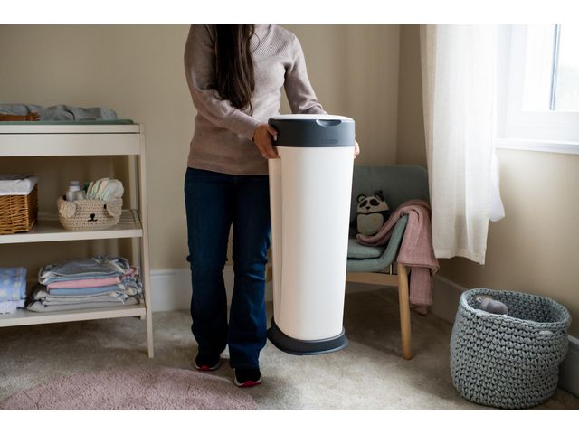 Detta är en ny version av Sangenic MAXI blöjhinken. Modern design för att passa såväl dagis och förskolor, som hemmiljö. Kan förvara upp till 60 blöjor. Garanterat lukt- och bakterieskydd. Man trycker bara ner blöjan i öppningen, kolven pressar sen ner blöjan i hinken. Twist and Click systemet snurrar in och förseglar varje blöja en och en i flerskikts plastfilm, som dödar 99% av alla illaluktande bakterier. Med nya effektiva Twist and Click systemet går det åt mindre med plast. Höjden på blöjbehållaren är skonsam för ryggen eftersom du inte behöver böja dig eller sträcka dig ner – så du kan göra dig av med smutsiga blöjor på ett bekvämare och smidigare sätt. Twist and Click Sangenic XL har dessutom ergonomiska handtag på sidorna, vilket gör det lättare att bära hinken. Twist and Click XL blöjbehållaren och påfyllningskassetterna är gjorda av 98% återvunnen och helt återvinningsbar plast. Den antibakteriella flerskiktsfilmen är nu biobaserad och tillverkad av hållbart framställd sockerrör GREENFILM. – Passar för att användas med Sangenic Twist and Click Refill-kassetter XL. – Lättplacerad luktfri blöjhink – Upp till 60 blöjor kan förvaras i hinken – Höjd: 76 cm – Färg: Vit