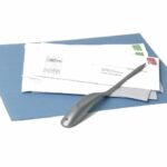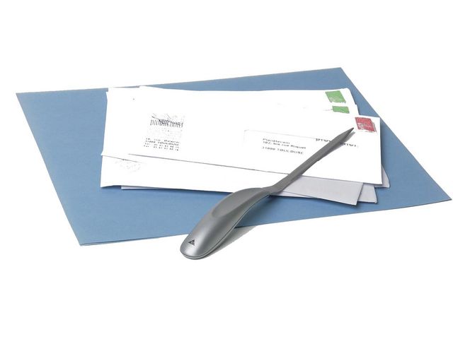 Manuell brevöppnare med ergonomiskt handtag och slittåligt plastblad. Brevöppnare, Alba® OULCUT Modern brevöppnare av ABS-plast i metallic-grå. Manuell brevkniv med ergonomiskt handtag och böjt blad. Mått (LxBxH): 24,2 x 2,7 x 2,3 cm Färg: silvergrå – Ergonomiskt format grepp. – Det böjda bladet gör det lätt att öppna breven. – Bekväm att använda.