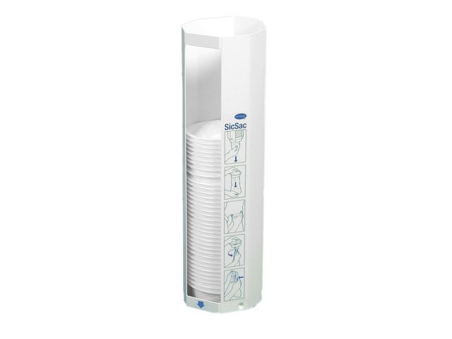 Dispenser som enkelt monteras på väggen för att göra påsen lättillgänglig. Dispenser för SicSac kräkpåsar. Består av vitlackerad plåt för väggmontering. Liten och platssparande. Monteras på väggen och gör påsarna lätttillgängliga. SicSac Dispenser är godkänd av Byggvarubedömningen. – Rymmer ca 50st påsar – Mått: (HxBxD) 47x13x15 cm