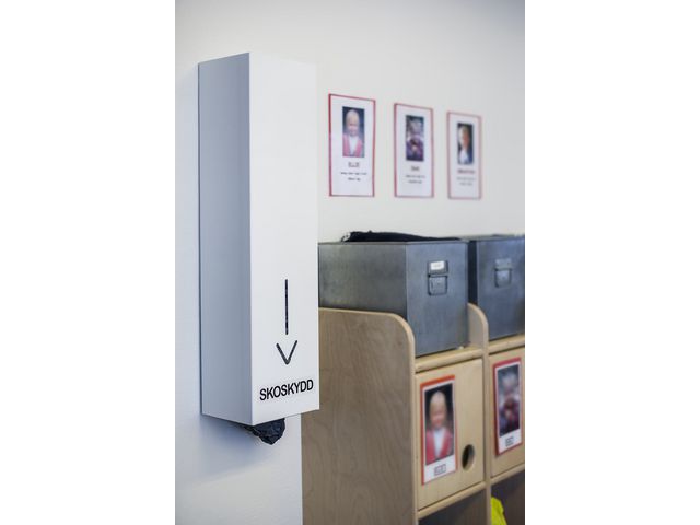 Praktisk och dekorativ skoskyddshållare i lackad plåt för montering på vägg. Passar skoskydden som beställs på art nr 226204. Produkten är CE-märkt. – Mått: 60x12x16cm – Färg: Vit – CE-märkt