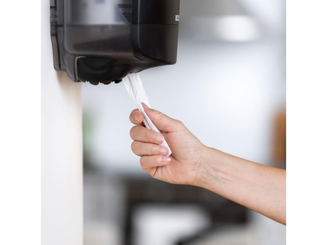 Centrummatad dispenser för torkrulle, kompakt design för smart och effektiv torkning av både ytor och händer. Dispenserlösning för torkpapper, perfekt för avtorkning och rengöring av ytor Enkel avrivning, räcker med endast en hand. Återvunnen plast i dispensernTransparant bakstycke – för enklare montering. Lätt att kontrollera pappersnivån, tack vare transparanta sidopaneler. Material, ABS (Acrylonitrile butadiene styrene), PC (Polycarbonate), POM (Polyoxymethylene). Välj mellan kvalitetsnivåerna Katrin – bra prestanda för alla behov och Katrin Plus – bäst prestanda för extra omsorg, både för miljön, hygienen och besökaren. – Längd: 174mm – Djup: 186mm – Höjd: 344mm