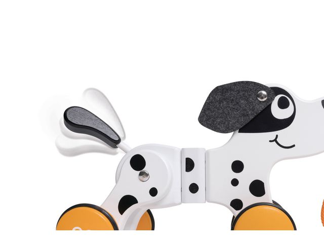 Hund på hjul och med snöre så att den kan tas med vart barnet än går. Gulligt dragdjur tillverkat i trä. Dragdjuret har ett snöre så barnet kan dra sin favoritleksak efter sig vad dom än ska. – Mått: 28x12x10 cm – Rekommenderad ålder: från 1år – CE