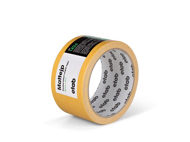 etab 1424 är en dubbelhäftande mattejp som används för mattläggning av mjuka mattor på golv av trä, betong och spånskiva. etab 1424 är en dubbelhäftande mattejp som används för mattläggning av mjuka mattor på golv av trä, betong och spånskiva. Hårdhäftande samtidigt som den är lätt att riva av för hand. Ej lämplig för PVC-mattor eller mattor med PVC-undersida. etab 1424 är gjord av bomullsväv med syntetiskt häftämne. Med skyddsliner. – Mått: 50mmx10m