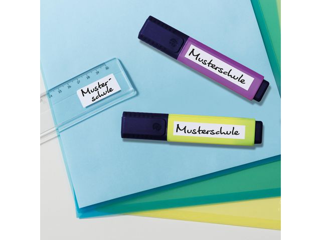 Permanentfästande etiketter för handskrift. Ett enkelt och snabbt sätt att märka föremål. Avsedda för handskrift med tuschpenna, kulpenna, märkpenna eller blyertspenna. Etiketten fäster säkert och permanent på papper, kartong, glas och plast. Perfekt för exempelvis brev, paket, mappar, pärmar, metallskåp m.m. – Mått: 13 x 8mm