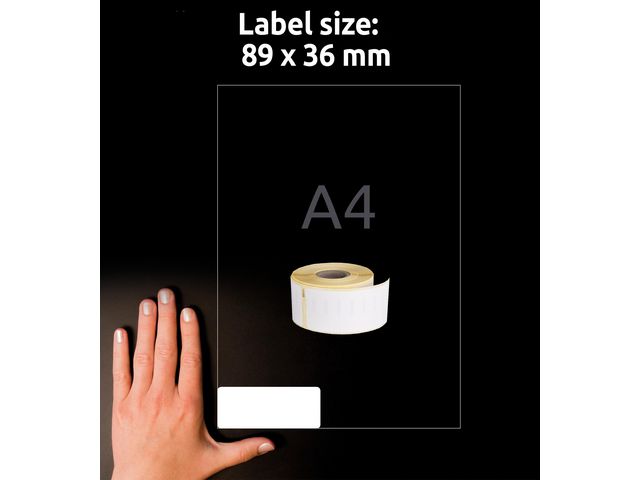 Avery adress-, universal-, och arkiveringsetiketter för Label Printer. Kompatibel med Dymo LabelWriter och Seiko Smart Label Printer. Kvalitetsetiketter som passar perfekt för brev, paket och andra försändelser. Termoetiketterna kännetecknas av en ovanligt god vidhäftning och är fria från Bisfenol A (BPA). Kan återvinnas i det vanliga pappersavfallet. Du kan enkelt och efter behov skriva ut en eller flera etiketter i taget och med DYMO eller Seiko Software kan du enkelt designa och utforma dina egna personliga etiketter med mjukvaran till din Dymo- eller Seiko-etikettskrivare. – Mått: 89 x 36 mm – Antal: 260/ rulle – Kompatibilitet: DYMO, Seiko – Färg: vit – FSC-Mix