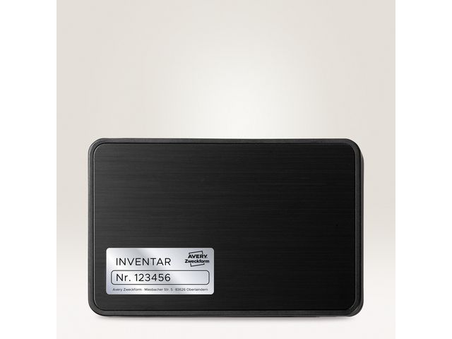 De här extrastarka, permanenta Avery-etiketterna är vädertåliga så att de kan användas för inomhus- och utomhusbruk, och är perfekta för att märka elektroniska enheter. Dessa tåliga, slitstarka etiketter från Avery är vädertåliga och mycket tuffare än vanliga pappersetiketter. De har extra stark vidhäftning och tål vatten, olja, smuts, UV-strålar och extrema temperaturer (–40 °C till +150 °C). De är perfekta för att märka små elektroniska komponenter eller större maskiner med företagets logotyp eller ID-kod. Lämpar sig för utskrift i de flesta svartvita laserskrivare och du kan skapa din egen personliga touch med hjälp av mallarna i programvaran Avery Design & Print. Dessa polyesteretiketter har en filmbeläggning och producerar en tydlig och skarp finish på dina utskrifter. – Slitstarka, permanenta etiketter för inomhus- och utomhusbruk – Använd för att märka IT- eller elektronisk utrustning – Olje-, smuts- och vattenbeständig – Tål temperaturer från –40 °C till +150 °C – Slitstarka – Passar för svartvita laserskrivare och kopiatorer – Skapa dina personliga etiketter med hjälp av den kostnadsfria programvaran Avery & Print Design – Enkel att använda – Totalt antal etiketter: 960 – Mått: 45,7 x 21,2 mm – Färg: silver