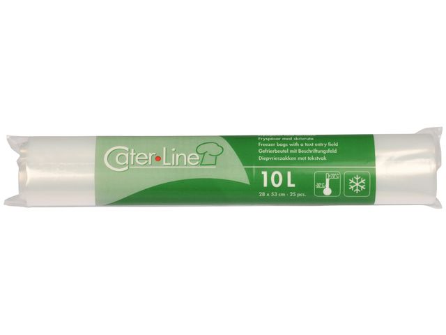 Transparenta påsar på rulle för förvaring och frysning. Perfekt att ha redo i köket för snabb förvaring av upp till 10 liter. De transparenta påsarna är tillverkade av LD-polyeten för förvaring och infrysning av alla slags livsmedel. Frys- och förvaringspåsarna levereras på rulle. Påsarna är livsmedelsgodkända. Levereras 25 st per rulle. – Livsmedelsgodkända – 10 liter – Mått: 280 x 530 mm – 25 st per rulle – Med skrivfält – 100% återvinningsbara som mjukplast
