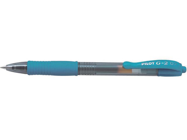 Gelpennan Pilot G2 07 är en snygg penna med smetfri bläcksammansättning som gör det enkelt att skriva. Denna penna glider lätt och har ett mjukt degliknande gelbläck i en avancerad smetfri och vattenfast sammansättning. Pennan har en kula av hårdmetall som behåller sin form och är extremt hållbar. Gelpennan finns också med en användbar fickklämma och den genomskinliga pennkroppen gör att du alltid vet hur mycket bläck som finns kvar. Gelpennan Pilot G2 07 har ett bekvämt gummigrepp och en tunn spets på 0,7 mm. – Klickmekanism – Spetsbredd: 0,7 mm – Linjebredd: 0,32 mm – Kan fyllas på med refill-patroner – Textfärg: Ljusblå – Färg pennkropp: Ljusblå transparent