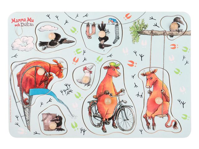 Pussla med Mamma Mu Härligt knoppussel i trä, med fina och roliga bilder av Mamma Mu och Kråkan. Knopparna är också i trä och de är lätta att greppa för de små fingrarna. – Material: Trä – Antal bitar: 9 stycken – Rekommenderad ålder: 1+ – Mått: 30×21 cm Varning. Lämpar sig inte för barn under 3 år – CE-märkt