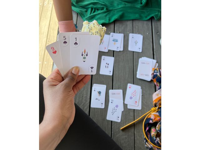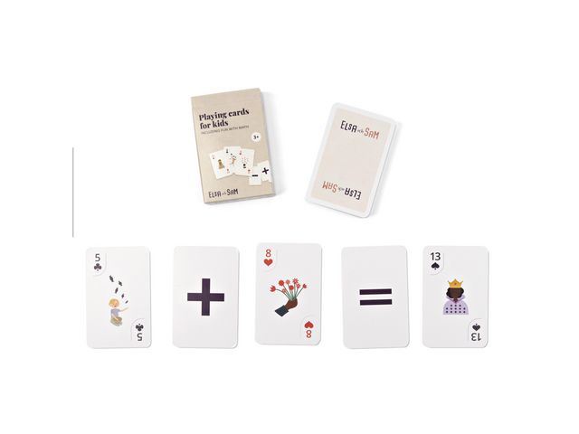 En klassisk kortlek för barn med en liten twist. Kortleken är anpassad så att alla kort ska bli lättare att förstå för barn, samtidigt som ni kan spela era kortspelsfavoriter. Istället för jokrar får ni med matematiska tecken som ger er chans att skapa nya roliga mattelekar tillsammans. Kortleken utmanar normerna för att ge barn chans att se våra härliga olikheter, och lika värde. Det är viktigt för alla barn att se mångfald i sin omgivning, vilket är anledningen till att illustrationerna speglar olika etniciteter, funktionsvariationer och har jämställdhet i åtanke. Hur skiljer sig kortleken från andra klassiska kortlekar? För att underlätta för barn att förstå kortens värde är Ess och de klädda korten utbytta mot 1, 11, 12 och 13. De klassiska jokrarna är utbytta mot de matematiska tecknen + – / X = Varje kort har olika motiv som kan räknas och matchas mot kortets siffra. Drottningen har det högsta värdet i kortleken – Paketet innehåller 55 kort varav 3 avser kort med matematiska tecken. – – Tillverkat av FSC certifierat kartong – PVC-fri – Rekommenderas från 3 år