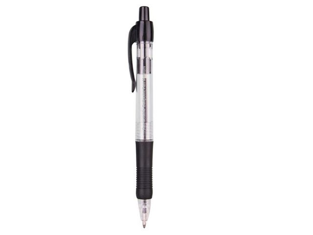 Kulspetspenna med tryckmekanism och ergonomsikt grepp. Bläckindikator. Skriver utan att kladda. – Spetsbredd: 1mm – Bläckfärg: Svart
