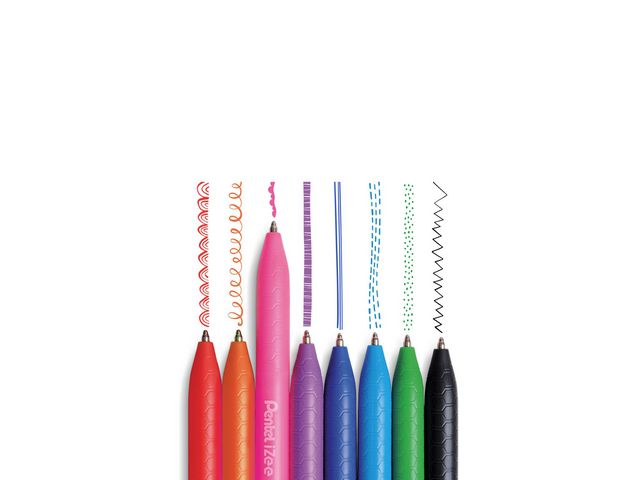 En kulspetspenna som är både skön och lätt – här i ett set med alla 8 färger: Svart, blå, röd, grön, orange, rosa, lila och ljusblå. iZee kulspetspenna är tillverkad av matt plast i skrivfärgen, och ett bikakemönster vid spetsen gör att pennan inte glider i handen när du skriver. Bläcket i iZee har låg viskositet, vilket ger en mjuk och lätt skrivkänsla. – Bläckfärg: svart, blå, röd, grön, orange, rosa, lila och ljusblå – Bläck: Dye ink – Linjebredd: 0,5mm – Kuldiameter: 1,0mm – Fickklämma: Ja – Återfyllningsbar: Nej – Indragbar: Ja
