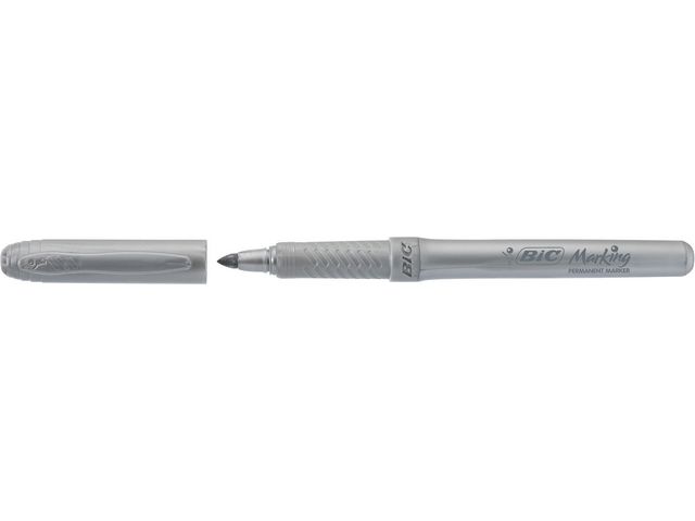 Släpp loss din kreativitet med de permanenta märkpennorna Marking från BiC®, som har ett snabbtorkande bläck med lång livslängd som passar utmärkt för en mängd olika ytor. Det är enkelt och roligt att rita och färglägga med BiC® Marking permanenta märkpennor. Det alkoholbaserade bläcket ger en långvarig lyster och kommer väl till pass för kreativa illustrationer i skolan eller arbetsuppgifter och för hemdekorationer. Den kulformade spetsen ger tydliga och exakta linjer över ljusa och mörka bakgrunder samt porösa ytor, som till exempel kartong. Det snabbtorkande bläcket smetar inte ut text och linjer. Märkpennan har ett gummigrepp, vilket gör den bekväm att hålla i och lämplig för regelbunden användning. – Permanent bläck – Med huv – Rund spets – Linjebredd: 1,1 mm – Textfärg: Guld och silver