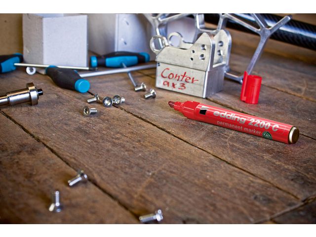 Den permanenta märkpennan Edding 2200 C är utformad för mångsidig användning och kan användas på nästan alla slags ytor. Den här permanenta märkpennan innehåller bläck som torkar snabbt och är smetfritt och vattenbeständigt, vilket hjälper dig att skriva tydligt och fläckfritt. Den är speciellt utformad för mångsidig användning och kan användas i flera olika sammanhang. Den permanenta märkpennan Edding 2200 C har en snedskuren spets som ger 1–5 mm linjebredd och den passar utmärkt när du vill ha fet och flödande text. Det ger jämn skrift på nästan alla slags ytor, bland annat plast, metall, glas och trä. Märkpennan har en lätt design i aluminium, vilket gör den mycket bekväm och enkel att använda. – Permanent bläck – Med huv – Snedskuren spets – Linjebredd: 1 – 5 mm – Textfärg: Svart