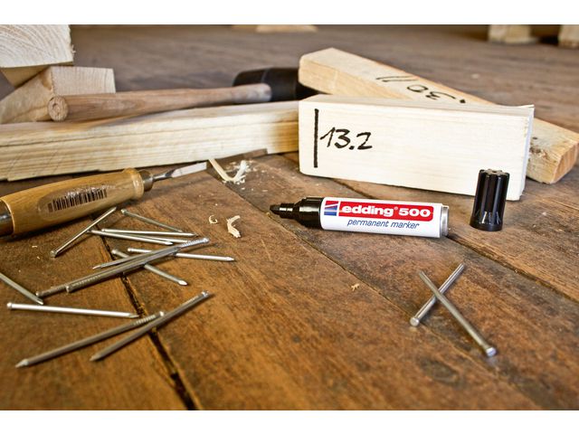 Den permanenta märkpennan Edding 500 är utformad för mångsidig användning och kan användas på nästan alla slags ytor. Den här permanenta märkpennan innehåller bläck som torkar snabbt och är smetfritt och vattenbeständigt, vilket hjälper dig att skriva tydligt och fläckfritt. Den är speciellt utformad för mångsidig användning och kan användas i flera olika sammanhang. Den permanenta märkpennan Edding 500 har en bred, snedskuren spets som ger 2 – 7 mm linjebredd och den passar utmärkt när du vill ha fet och flödande text. Märkpennan kan användas på nästan alla slags ytor, bland annat plast, metall, glas och trä. – Permanent bläck – Med huv – Snedskuren spets – Linjebredd: 2–7 mm – Textfärg: Svart