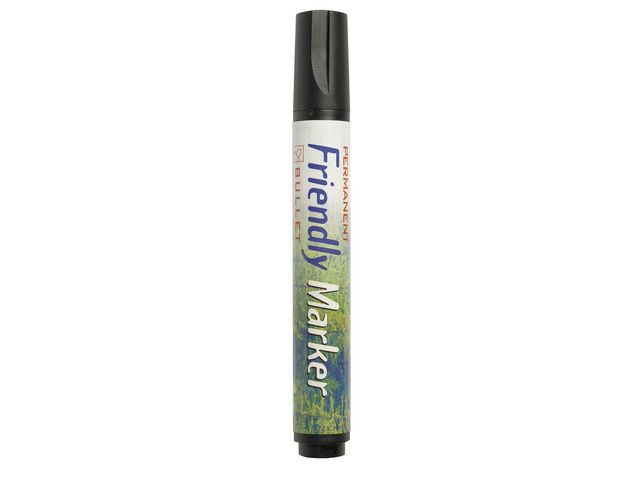 Friendly Alkoholbaserad permanent märkpenna. Fäster på de flesta underlag. Pennkroppen är tillverkad av återvunnet papper vilket minskar miljöpåverkan med 50 %. Märkpennan har rund spets. Permanent märkning med alkoholbaserat bläck. Torkar snabbt. – Pennkroppen är tillverkad av 80% återvunnet material – Permanent bläck – Med huv – Rund spets – Linjebredd: 1,5-3mm – Textfärg: Svart