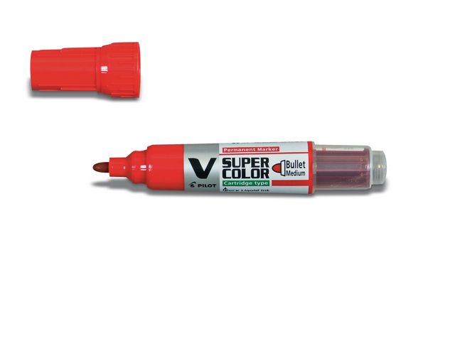 Pilots Begreen V Super Color är en permanent märkpenna som ger intensiva färger och har ett speciellt system för att fukta bläcket. Pilot Begreen V Super Color permanent märkpenna är idealisk om du vill skriva med tydlig och framträdande färg. Mediumkulspetsen på 2,3 mm ger en linjebredd som är lämplig för uppgifter som kräver exakt och kontrollerad skrift. Med sin stora bläckbehållare håller den här pennan länge, vilket innebär ytterligare kostnadsbesparingar. Dessutom har den ett särskilt system för att fukta bläcket som innebär att bläcket flödar konstant utan att du behöver pumpa eller skaka. Som en del av Begreen-sortimentet är den ett miljömedvetet val eftersom den är tillverkad av 92 % återvunnet material. Kan användas på många olika ytor. – Permanent bläck – Med huv – Rund spets – Linjebredd: 2,3 mm – Textfärg: Röd – Fri från exylene