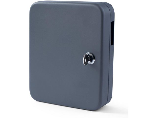 Organisera, säkra och förenkla nyckelhanteringen Med Pavo nyckelskåp slipper du stressen över borttappade eller felplacerade nycklar. Här får du en stilren och säker förvaringslösning för upp till 80 nycklar, komplett med numrerade nyckelbrickor, väggfästen, och smidig nyckelåterlämningslucka (en unik och praktisk funktion som gör det möjligt att lämna tillbaka nycklar utan att öppna skåpet. – Kapacitet: 20 nyckelbrickor Låsning: Nyckellås (2 nycklar medföljer) Monteringssats: Ingår Material: Metall Mått (BxDxH): 160x60x200 mm Vikt: 0,9 kg