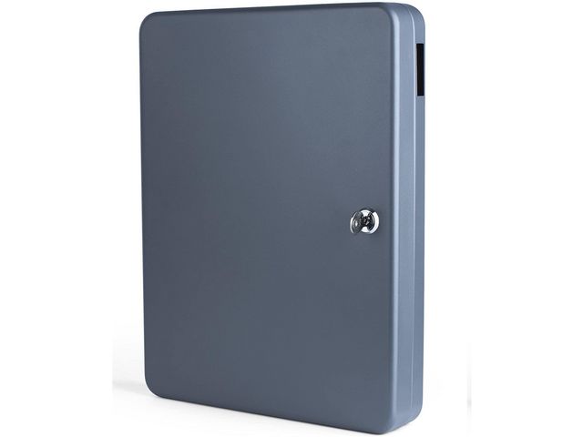 Organisera, säkra och förenkla nyckelhanteringen Med Pavo nyckelskåp slipper du stressen över borttappade eller felplacerade nycklar. Här får du en stilren och säker förvaringslösning för upp till 80 nycklar, komplett med numrerade nyckelbrickor, väggfästen, och smidig nyckelåterlämningslucka (en unik och praktisk funktion som gör det möjligt att lämna tillbaka nycklar utan att öppna skåpet. – Kapacitet: 80 nyckelbrickor Låsning: Nyckellås (2 nycklar medföljer) Monteringssats: Ingår Material: Metall Mått (BxDxH): 280x60x370 mm Vikt: 2,2 kg