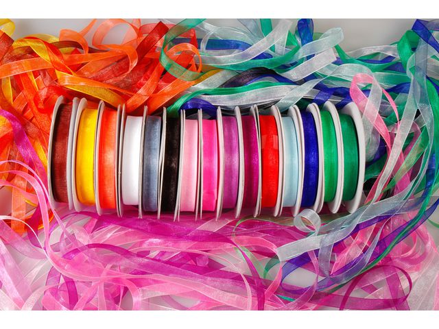Mycket bra för halsband, tillsammans med halsbandssnodd. Även bra för dekoration och som presentband. Bredd 10 mm. 15 färger x 25 m.