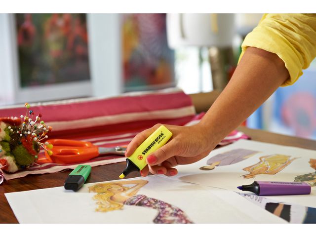 Markera text och viktig information med den klassiska överstrykningspennan STABILO® BOSS® ORIGINAL med Anti-Dry-Out-teknik. Originalöverstrykningspennan STABILO® BOSS® har ett tillförlitligt vattenbaserat bläck med Anti-Dry-Out-teknik så att korken kan vara av under 4 timmar utan att den torkar ut. Den kan användas på nästan alla typer av papper. Den har en snedskuren spets som ger dubbla linjebredder på 2 respektive 5 mm så att du kan använda den i många olika sammanhang, till exempel för att skriva, stryka under eller markera. Överstrykningspennorna från STABILO® passar perfekt för studenter och yrkesverksamma som måste läsa och markera viktig information i texter. Överstrykningspennan finns i en mängd olika attraktiva färger och har den klassiska BOSS®-formen med en platt pennkropp som inte rullar iväg. – Med huv – Snedskuren spets – Linjebredd: 2 respektive 5 mm – Lätt att fylla på med billiga BOSS®-påfyllningar – Textfärg: Grön – Färg pennkropp: Grön
