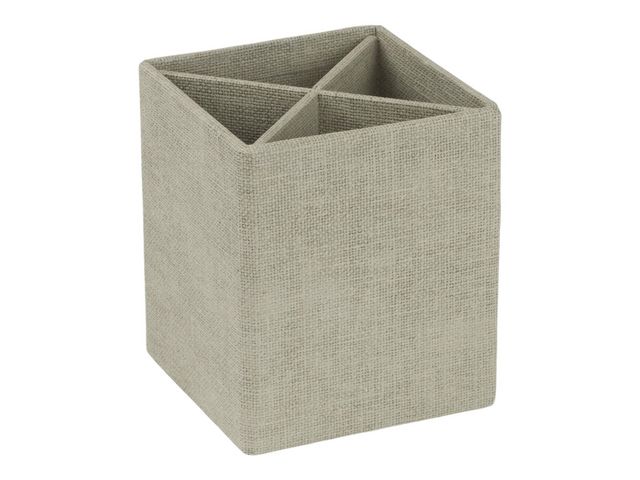 Praktisk pennburk med 4 fack för sortering av pennor mm. Snygg och enkel design för en behaglig arbetsyta – Tillverkade av 100 % återvunnet returpapper – FSC-certifierat – Mått: 8,5×8,5x10cm
