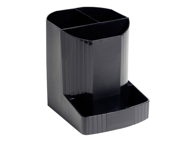 Pennhållaren Exacompta Mini-OCTO håller skrivverktyg i hemmet och på kontoret inom räckhåll på din arbetsstation eller skrivbord. Pennhållaren Exacompta Mini-OCTO har fyra fack och tillräckligt med utrymme för dina pennor och annat kontorsmaterial. Den här utrymmesbesparande pennhållaren är tillverkad av polypropylen för ökad hållbarhet och styrka. Den är öppen upptill så att du snabbt kan komma åt material såsom pennor, suddgummin och saxar och ha dem nära till hands. Dessutom är den här hållaren tillverkad av återvunna juiceflaskor och har även Blue Angel-certifiering för att säkerställa att den är miljövänligare. – Serie: Ecoblack – Färg: Svart – Mått: 123 x 90 x 110 mm – Blue Angel