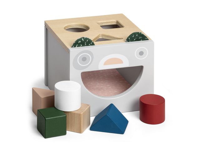 Plocklådan som över upp motoriken och låter barnen använda sinnena. Rätt form i rätt hål! Plocklådan är en populär, klassisk träleksak från Micki. Här i form av en söt björn i trä med mjuka detaljer i grönt linne! Plocklådan är rolig att leka med, övar motoriken och låter barnet använda fler av sina sinnen i leken. Vilken kloss ser ut att passa i vilket hål, hur känns björnens mjuka öron när du tar på dem? När klossarna är i lådan sticker du in handen i munnen på den glada björnen för att ta ut dem och börja om igen. Botten av lådan är klädd med filt för att ge ett behagligt ljud när klossarna släpps ner. Plocklådan innehåller sex träklossar i tre olika former. – Mått: 13,5×13,5×11,5 cm – Material: Linne och trä – Fri från PVC, bisfenol och förbjudna ftalater – Rekommenderad ålder: från 18månader – FSC-märkt – CE