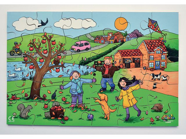 Fyra stycken olika pussel som visar vad som sker under de olika årstiderna på gården. – Antal pussel/fp: 4 – Antal bitar: 30/pussel – FSC licensnummer: FSC-C177741 – Rekommenderad ålder: från 4 år – Varning. Lämpar sig inte för barn under 3 år – CE
