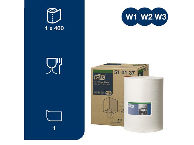 Slitstark struktur och hög absorptionsförmåga för borttagning av olja, fett, smörjmedel och smuts. Att byta trasor inför varje uppgift är ineffektivt. Tork Rengöringsduk gör livet enklare och kan användas med de flesta lösnings- desinfektions- och rengöringsmedel. Dukarna är slitstarka och absorberar snabbt upp vätskor och oljor, och de kan användas upprepade gånger för ökad effektivitet. Använd med Tork Dispenser Maxi Centrummatad eller Tork Dispenser Rulle i Box, som går att använda med en hand. De kan även användas med Tork Golv- och Väggställ som tagits fram för att spara utrymme på arbetsplatsen. – Mjuk och flexibel kvalitet som kan användas upprepade gånger – Kompatibel med Tork W2,W3,W1 dispensrar – 1 rulle med 400 dukar – 1-lagers, vit – Premium-kvalitet – Storlek på rulle: D 152m, B 32cm – Arkets längd: 38cm – Hylsa inre diameter: 7.13cm – Material: cellulosamassa, polyester och polypropylen – FSC 100 %