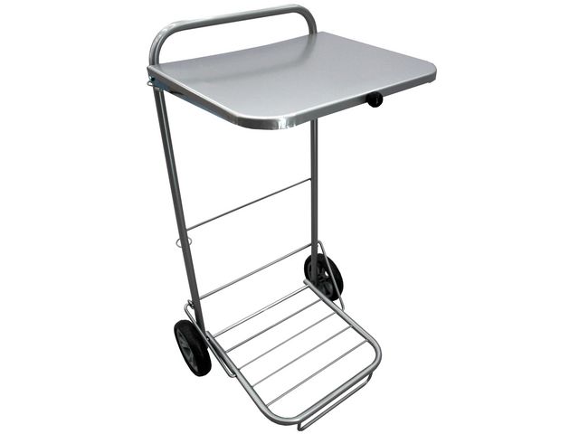 Lättrullad säckvagn med lock. Säckvagn grå med lock med stora lättrullande hjul. Botten på säckvagnen går enkelt att fälla in vid stuvning. – Mått: H 880 x W 500 x L 360 mm – Färg: silver – 75 % återvunnet post-consumer konstruktionsstål, 100 % post-consumer återvunnen polypropylen