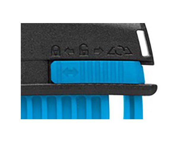 SECUNORM MIZAR är en universal kvalitetskniv med automatisk bladåtergång. SECUNORM MIZAR har ett blad som automatiskt går tillbaka när trycket mot underlaget släpps. Ergonomisk hantering där knivbladet regleras med en spak som trycks mot kniven istället för skjutknapp. Tack vare ett relativt stort skärdjup kan du använda denna säkerhetskniv för att skära alla vanliga skärmaterial. Dess ergonomiskt utformade, låsbara klämgrepp passar både höger- och vänsterhänta. SECUNORM MIZAR 3-i-1 säkerhetslås är unikt, skjut den för att låsa och låsa upp ditt skärverktyg. Och vid behov, flytta den till position 3 för att säkert byta eller rotera bladet. – GS-certifierad – Mått (LxBxH): 139×15,6×50,5mm – Vikt: 59g – Skärdjup: 15mm – Grundmaterial: Glasfiberarmerad plast