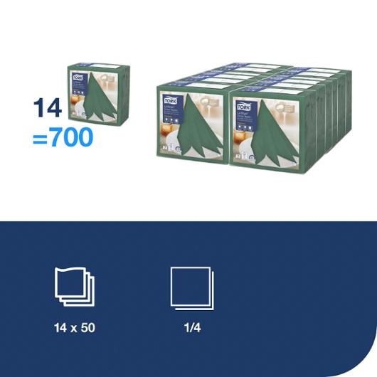 Vackra pappersservetter med en underbar linnekänsla som ger ett elegant intryck! Gör ett gott första intryck med högkvalitativa Tork LinStyle Middagsservett. Dessa servetter ger ett lyft till middagsupplevelsen eftersom de både ser ut och känns som premiumlinne. Dessutom är de mjukare och tjockare än vanliga pappersservetter, så gästerna kommer att märka skillnad. Spill torkas enkelt upp på ett ögonblick med den extra absorberande kvaliteten som sparar personalen både tid och ansträngning. Överlägsen absorptionsförmåga vid upptorkning av spill Matcha din lokals inredning med brett urval av moderna och klassiska färger. – Hållbar nonwoven-kvalitet – 1-lagers, grön – Premiumkvalitet – 1/4-vikt – Vikt storlek: D 19.5 cm, B 19.5 cm – Ovikt storlek: D 39 cm, B 39 cm – FSC Mix – Livsmedelsgodkänd
