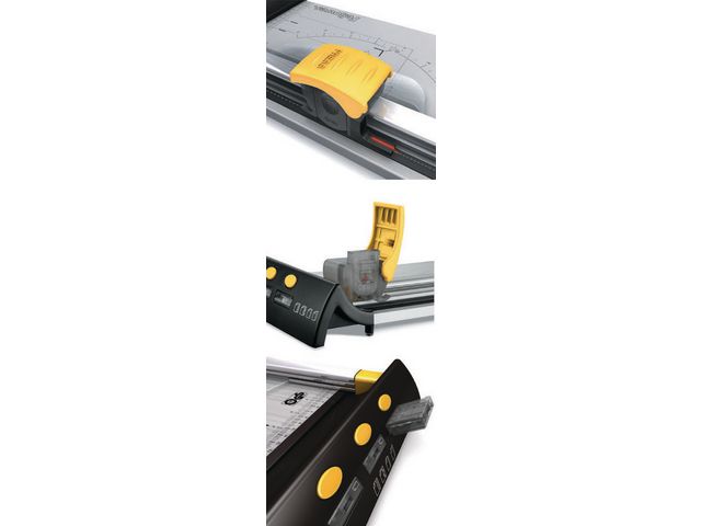 Rullskärmaskin för A3-format – lämplig för mindre omfattande uppgifter. Rullskärmaskin, Fellowes Electron. Med unik SafeCut LED-guide som är mer exakt än rullskärmaskiner med laser. Skärbladet byts enkelt ut så att man utan problem kan byta mellan rakt skär, vågformigt skär, fals/bockning och perforering. SafeCut- klingan blottas enbart när den används, vilket ökar säkerheten. – Integrerad placering av SafeCut™-klingan – Skärlängd: 46,5 cm – Skärkapacitet: 20 ark – Mått (anläggsbord): BxL 19,5 x 46 cm – Vikt: 1,6 kg – Best.enhet: styck