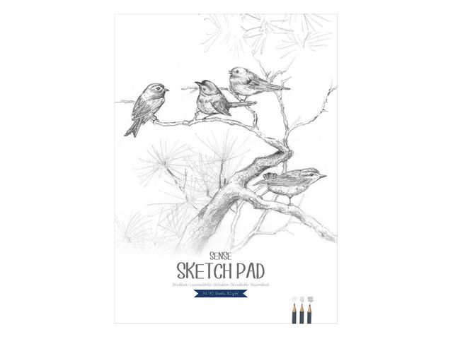 Skissblock A3 80 gsm Limmat överkant, Trä- och syrafritt papper. 2 mm kartong baksida 70 blad – FSC Mix