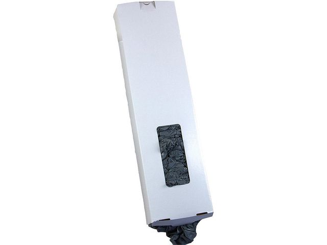 Engångsskoskydd med resår upptill. Skoskydd i dispenserkartong. Skoskyddshållare säljes separat (art. nr. 132206). – Storlek: 15x41cm – Tjocklek: 50my – Färg: grå