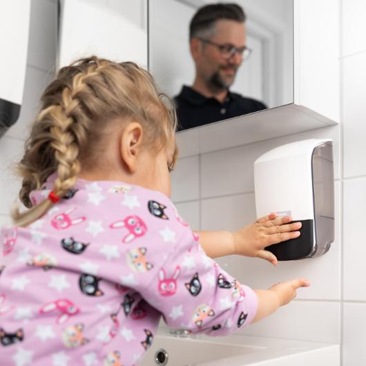 Effektiv, mild oparfymerad skumtvål som är mycket skonsam mot huden. Med Katrins ”Pure Neutral’ blir varje toalett en ren och hygienisk oas av välbefinnande, där obehagliga lukter helt enkelt neutraliseras. Rikligt, stabilt skum som ger en mjukt löddrande känsla och är enkelt att fördela på händerna, återfuktande. Utan färg & parfym, räcker till 1250 doseringar. Innehåller milda ingredienser för känslig hud som gör tvålen särskilt lämplig för frekvent användning. Dermatologiskt testad och godkänd, miljömärkt med Svanen och EU-blomman. Samtliga ingredienser har valts ut omsorgsfullt med kvalitet i åtanke och för denna produkt samt med minsta möjliga miljöpåverkan och skadliga effekter på människor i åtanke. pH-värde: 4,5 Lukt: Oparfymerad Dosering: Räcker till 1250 doseringar Utseende: Skumtvål Svanen: Licensnummer 50900062 EU Ecolabel licensnummer: DK/030/001