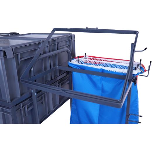 Stor och ergonomisk vagn med generösa utrymmen för utrustning. Komplett med 3st korgar, tröskelkrypare, sopsetshållare, 2st 20l backar, 2st 15l backar, 2st tvättsäckar, 2st tvättnät. Vagnen är av hög kvalitet, robust och ergonomiskt utformad för moderna städmetoder. Systemvagnen har plats för stora förvaringsbackar och mycket utrustning. Vagnen är anpassningsbar för de flesta städområden. S2-Systemvagn Stor har en tröskelkrypare som är ergonomisk och lätt att använda. Handtaget är justerbart i två lägen. Med de lättkörda tysta hjulen så styr du vagnen ergonomiskt och lätt i ditt dagliga arbete. Flaskhållare (lev.nr. 62600542) och skrivplatta (lev.nr. 62600543) är tillbehör och köps separat. – Ergonomisk – Unik tröskelkrypare – Lättkörda designade hjul – Bromsbart hjul – Mått: L 1000 mm, B 615 mm, H 1090 mm