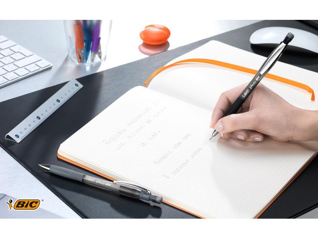 Pennan BIC® Velocity Pro är en påfyllningsbar stiftpenna med ett bekvämt gummigrepp. Pennan BIC® Velocity Pro passar utmärkt för dagligt skrivande. Det bekväma gummigreppet ger stadig hand, så att du kan skriva jämnt och tydligt. Pennans spets ger jämna linjer, så att föreläsnings- och mötesanteckningar blir klara och tydliga. Du kan ha stiftpennan på dig hela tiden genom att fästa den på bland annat skjortficka, anteckningsblock och mappar. Den indragbara metallspetsen gör att du lugnt kan bära den i fickan eller i väskan utan att det blir hål, och den tåliga klickmekanismen ger långvarig skrivglädje. Pennan har stiftrör och fjädrande mekanism som hindrar stiftbrott. – Klickmekanism – Med suddgummi – Spetsstorlek: 0,7 mm – Hårdhetsgrad: HB – Färg pennkropp: Svart – Praktisk fickklämma